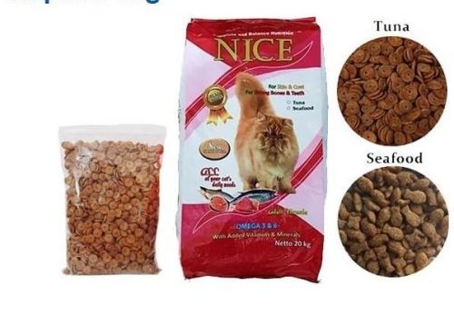 Makanan kucing merk Nice merupakan makanan kucing yg mengandung protein 28% serta aroma khas seafood sehingga mengundang selera makan kucing Anda.
