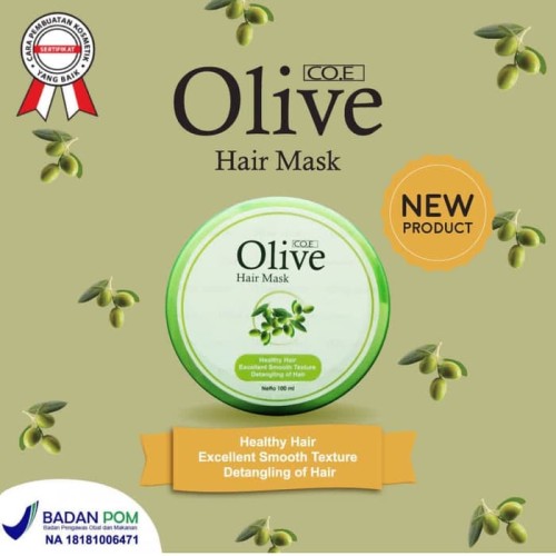 New new dan udh BPOM AMAN buat yang tau kualitas coe olive gak usah ragu buat serian rambutnya. Dapatkan hair mask super lembut lemes tapi tidak lepek Serian olive ini membuat rambut lurus mudah diatur. Mengatasi rambut kasar kusut Dan bercabang. Yukk buat kamu yg punya masalah rambut di atas bisa cusss pakai ini ya