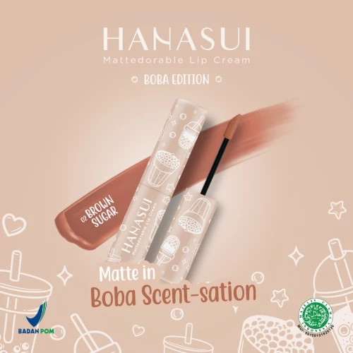 HANASUI MATTEDORABLE LIPCREAM BOBA EDITIONMinuman Boba menjadi inspirasi Hanasui dalam berinovasi menghadirkan produk baru.Hanasui menghadirkan cara baru untuk menikmati minuman Boba tanpa khawatir kalori, danitu dengan Hanasui Mattedorable Lip Cream Boba edition Penggemar Boba dapat menikmati pengalaman menggunakan Lip Cream dengan aroma Boba yang menenangkan di bibir sepanjang hari. Dengan finishing velvet yang ringan dan formula yang tahan lama, pigmen sempurna, dannyaman di bibir disertai kandungan Olive Oil & Vitamin E yang membuat bibirmu terhidrasi dengan baik. 1. Sensasi dan wangi boba yang menyenangkan2. Velvet matte finish3. Pigmented4. Double Moisturizing ( olive oil & vitamin E )5. Long lasting6. No Paraben Added7. Dapat digunakan sebagai blush onNetto : 4grBPOM : NA18201301374