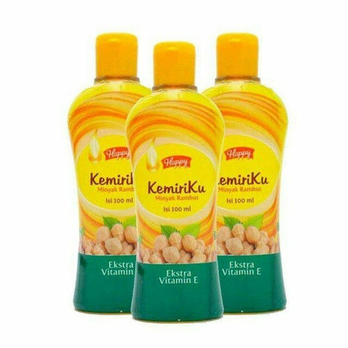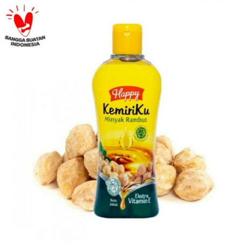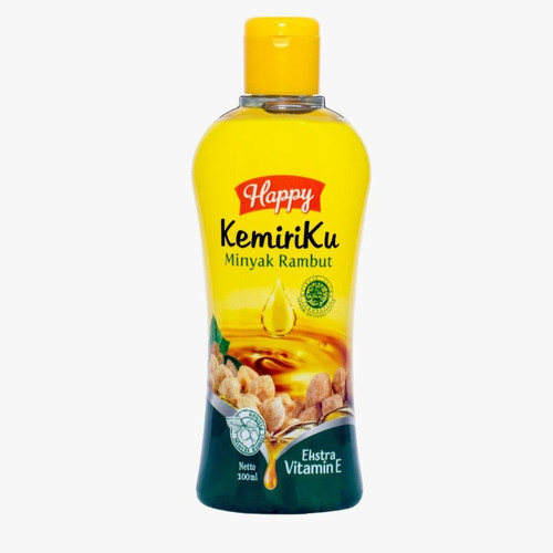 HAPPY Kemiriku Minyak Rambut - 100 mlKEMIRIKU minyak rambut mengandung minyak kemiri yang membantu menguatkan rambut serta menutrisi kulit kepala. KEMIRIKU Diperkaya vitamin E sebagai antioksidan yang membantu memelihara kesehatan kulit kepala dan rambut.Detail Produk:- Happy Kemiriku Minyak Rambut mengandung minyak kemiri yang membantu menguatkan rambut serta memberi nutrisi kulit kepala.- Diperkaya Vit E sebagai antioksidan yang membantu memelihara kesehatan kulit kepala dan rambut.- Pemakaian rutin setiap hari dapat membantu rambut tumbuh lebih subur, hitam dan terawat.Cara Pakai:- Oleskan Minyak Rambut KEMIRIKU ke kulit kepala sambil dipijat.- Pemakaian rutin setiap hari dapat membantu rambut tumbuh lebih subuh, hitam, dan terawat.