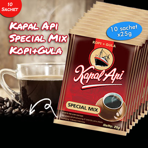 Kapal Api Special Mix 10 x 25gKapal Api Special Mix 10 x 25gadalah salah satu kopi sachet yang menjadi kesukaan penikmat kopi di Indonesia. Diracik dari biji kopi pilihan Indonesia dan diolah dengan teknologi mesin kopi modern. Berpadu dengan baik bersama gula murni, menghasilkan kopi sachet tubruk paduan kopi dan gula yang spesial untuk setiap penikmat kopi di Indonesia. Hadir dengan kemasan sachet yang praktis sehingga mudah diseduh di mana saja dan kapan saja. Menjadikannya tetap Kapal Api yang memiliki jargon "jelas lebih enak" dan pilihan para penikmat kopi Indonesia sejak tahun 1927.