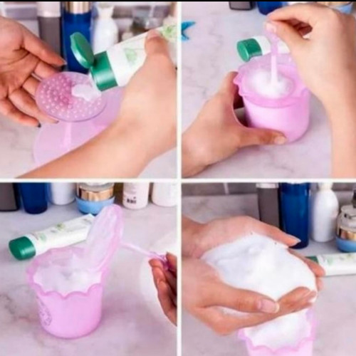dalam pori-pori. Akibatnya wajah jadi tetap kusam dan berjerawat. Bekas riasan wajah masih nempel di mulut pori-pori, sayang kan beli sabunnya mahal-mahal.Mengapa tidak bisa membersihkan wajah hingga ke pori-pori?Karena cara pakai sabun wajahnya salah. Sabun wajah yang dipakai seringkali hanya di gosok ke tangan sebentar tanpa membuat sabun jadi berbusa tebal. Dengan kondisi sabun yang masih berupa cairan padat tentunya tidak bisa menjangkau pori-pori wajah.Dengan foam maker ini, menghasilkan busa sabun jadi mudah. Alat ini dapat menghasilkan busa tebal hanya dengan sedikit sabun. Membersihkan wajah jadi lebih bersih dengan sabun yang sudah berbentuk busa, dapat membersihkan hingga ke pori-pori kulit wajah. Kulit wajah jadi konclong dan bebas jerawatCara Pakai :- Tuang sabun ke alat (seperti di gambar), tuang sedikit aja- Tambahkan sedikit air, lalu kocok dengan dengan gerakan naik turun selama 20 detik- Busa sabun siap dipakaiMaterial : PlastikSize : 9.5 x 7.5 cm
