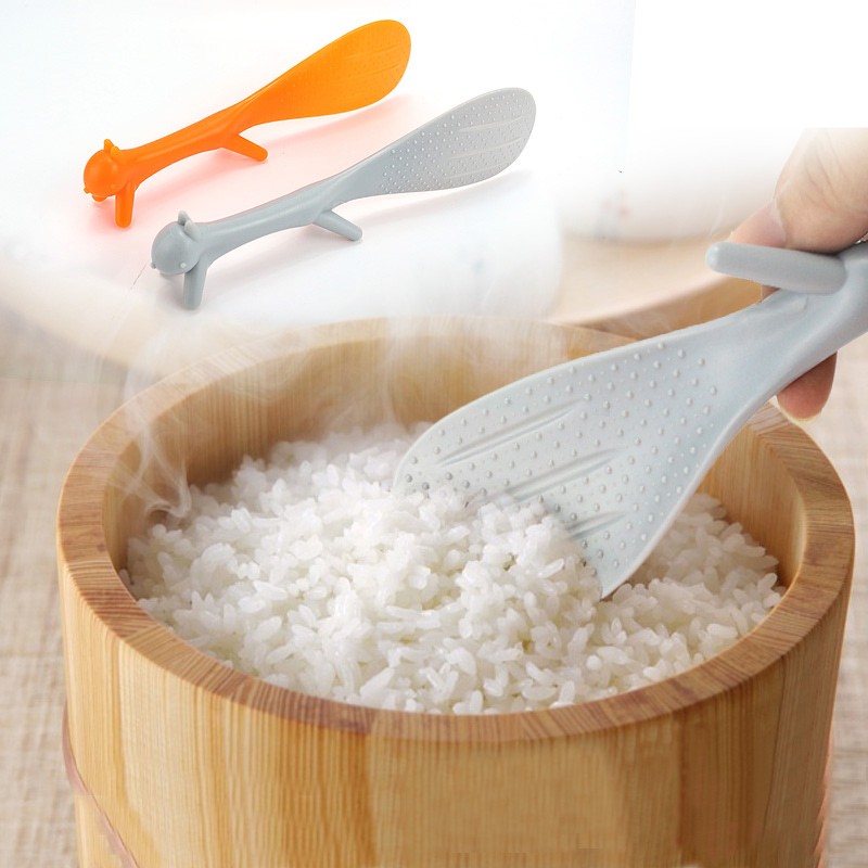 Sendok nasi rice cooker yang unik dan lucu berbentuk tupai. Permukaan sendok dilengkapi dengan tonjolan-tonjolan kecil untuk mengurangi nasi menempel di permukaan. Dua kaki tupai, selain sebagai hiasan, juga berguna untuk meletakkan sendok ini di meja (stand). Terbuat dari plastik berkualitas tinggi, sendok ini bisa tahan panas hingga 110 derajat Celcius.