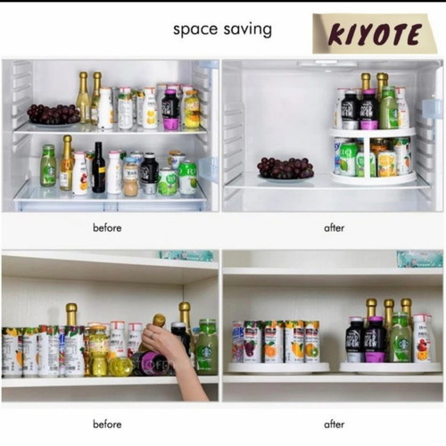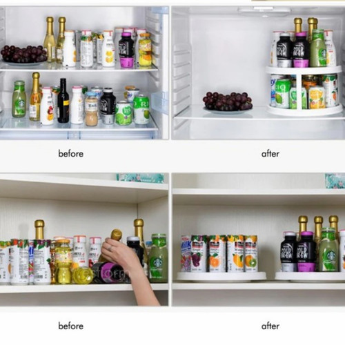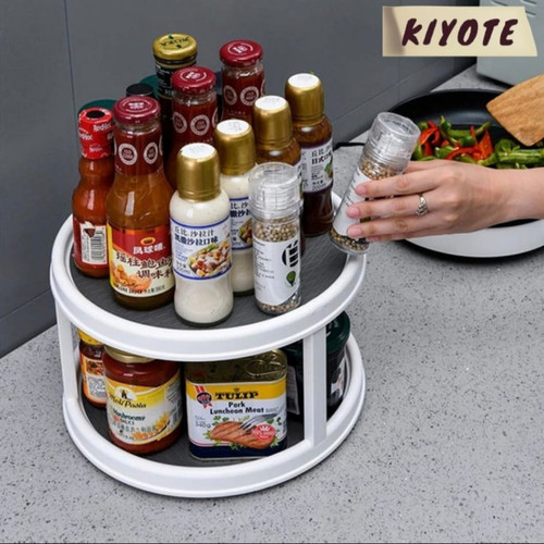 Jaga agar lemari dapur atau pantry Anda tertata rapi dengan pengatur bumbu fungsional ini !!Sempurna untuk mengatur Botol Bumbu, Sup atau kaleng sayuran, saus dan banyak lagi.Apakah dapur Anda berantakan karena banyaknya botol bumbu tidak tahu harus gimana merapikannya?coba dengan ini rak bumbu dapur putar 2 tingkat, semua jadi kelihatan rapih di dapur Anda.Keunggulan Produk:- Praktik dipasang langsung bisa pakai- Hemat tempat, terdiri dari 2 tingkat dan bisa berputar 360derajat, kapasitas besar- Bahan ramah lingkungan dan kokoh- Mudah dibersihkan, Multifungsi, Antislip, nyaman untuk digunakan- Cocok untuk penyimpanan buah, sayuran, bumbu dapur, kosmetik dsb.Spesifikasi Produk:- Nama Produk: Rak Bumbu Dapur Putar 2 Susun- Bahan: PP ABS + TPR (tahan lama dan tahan air)- Ukuran: L=24.8cm X T=15.2cm- Cocok dipakai pada: Dapur/Kamar Mandi/Kamar Tidur- Berat: 510 gram- Warna: Putih