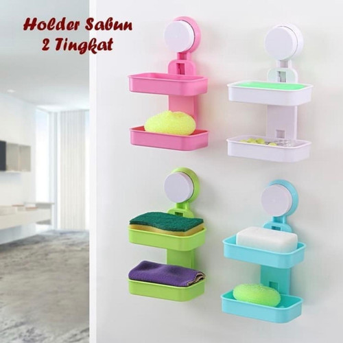 Rak Sabun 2 Susun Holder Sabun shampoo Rak kamar mandi multifungsi Holder 2 tingkat, pasangnya tanpa paku, tanpa bor keramik. Tempelan model karet hisap dengan tombol pemutar, kuat, gak mudah jatuh, bisa nempel di permukaan kaca atau keramik.Fungsinya untuk tempat sabun padat, aksesoris, kosmetik, kaca mata, spon cuci, sabun cuci. Bisa dipasang di kamar mandi atau dapur. Dengan design 2 tingkat bisa diisi lebih banyak, gak boros tempat. Bagian bawah holder terdapat lobang tirisan air.Design praktis dan modern, kamar mandi atau dapur jadi terkesan modern.Cara Pasang :- Lap bersih permukaan yang hendak dipasang, lalu keringkan- Lap bersih permukaan karet hisap- Tempel holder ke keramik, lalu putar pemutar hingga karet hisap melekat kuat