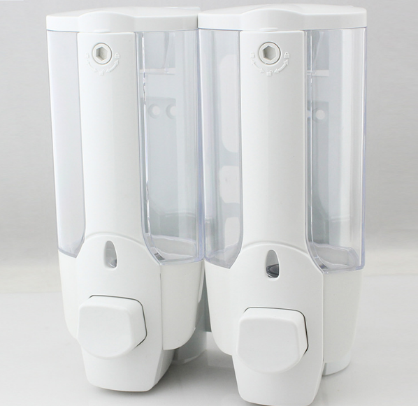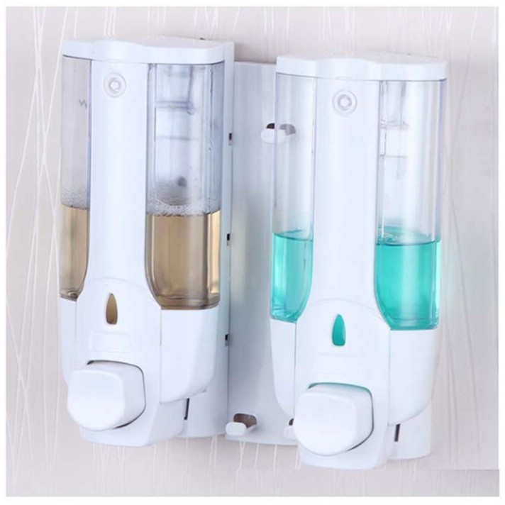 『Cashback』【COD】700ml Dispenser Sabun DOUBLE Tempat Pencet Sabun Cair 2 Tabung Soap Otomatis Hand Sanitizer Sabun Sampo Alkohol Warna Putih Plastik Tebal Transparan Bersih Tidak Perlu Batre Termurah - Bayar Ditempat - COD