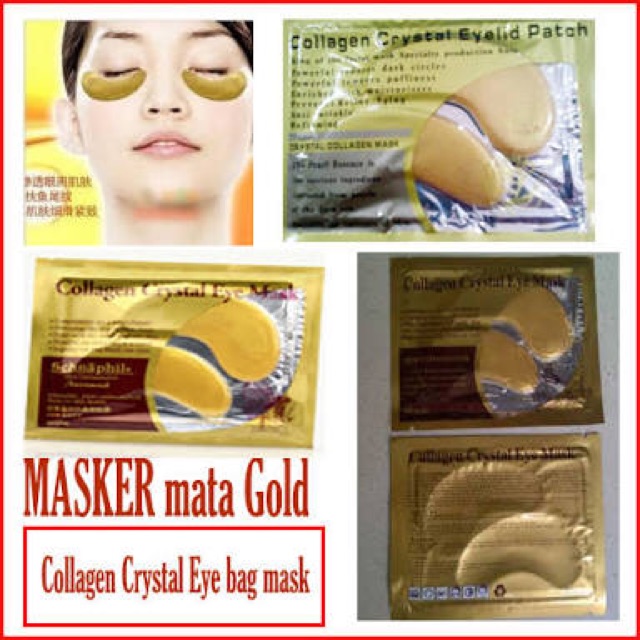 MASKER MATA GOLD COLLAGENTerdiri dari : Serbuk Emas, Collagen, Vitamin C, Vitamin E, Asam Hylauronic, Provitamin B5,Manfaat :1. Menghilangkan lingkaran hitam dan kantung mata,2. Menghilangkan garis-garis halus,3. Menghilangkan kelelahan mata,4. Mengencangkan kulit dibawah mata,5. Membuat mata menjadi fresh dan segar kembali.Cara pemakaian