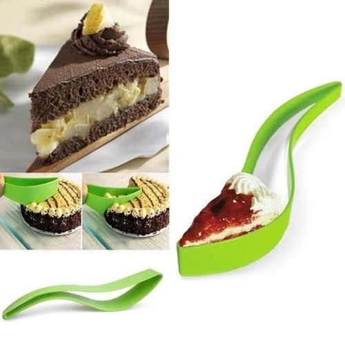 Deskripsi Alat Pemotong Pengangkat Kue Cake Tart Cake Server Pisau Potong DapurAlat sederhana, namun inovatif, untuk membantu Anda memotong dan mengangkat potongan kue cake ke piring makan. Alat ini akan membuat proses penyajian kue menjadi lebih cepat dan lebih bersih; selain menghindari resiko tangan terluka dibandingkan memakai pisau biasa.
