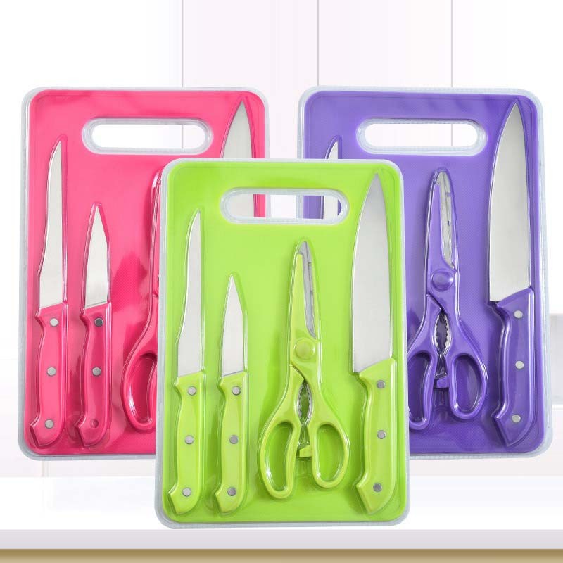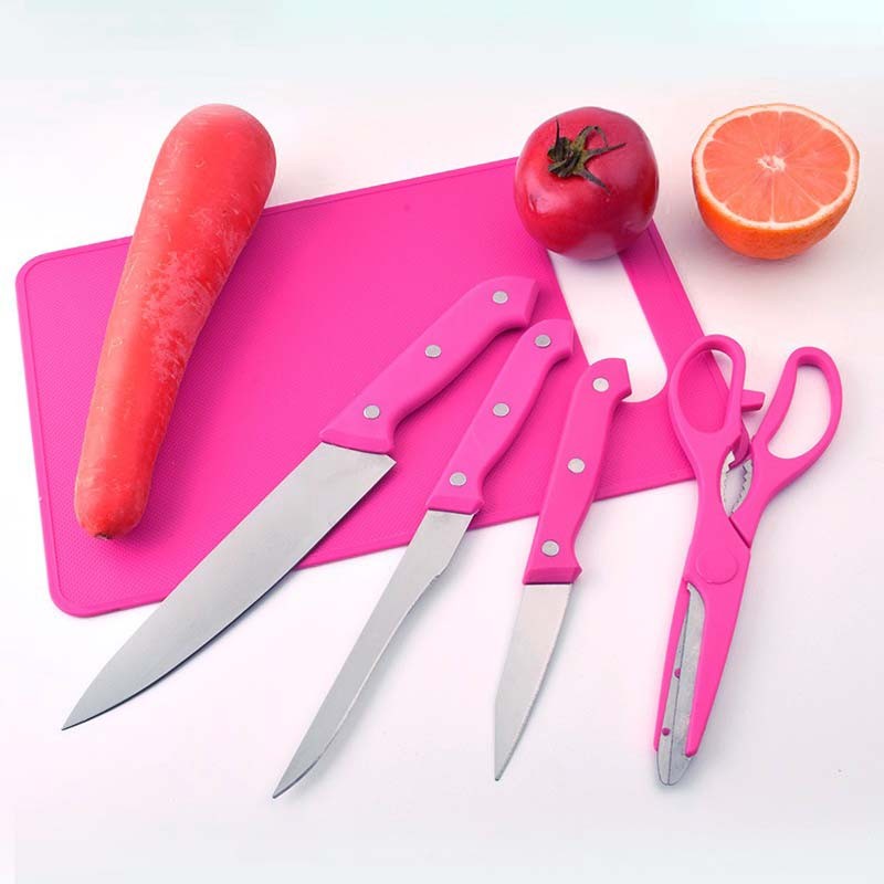 - Material : Stainless steel & plastik ABS- Tersedia 5 warna:- Package Include :1. Pisau chef2. Pisau pengupas buah3. Pisau roti4. Gunting5. Talenan- Mata pisau tajam dari stainless anti karat- Pegangan pisau dan telenan dari plastik ABS berkualitas dan tidak licin- Cocok digunakan untuk pemakaian pribadi atau sebagai hadiah- Detail ukuran silahkan cek foto produk- Ukuran : 29 cm x 19 cm