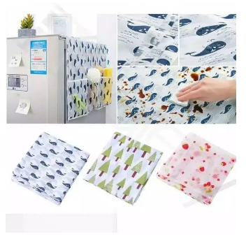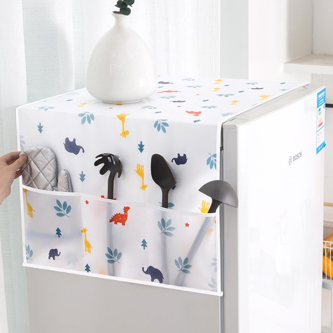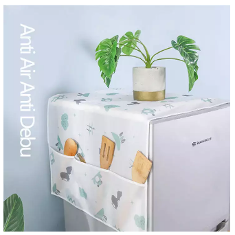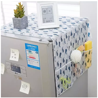 Penutup bagian atas kulkas berfungsi sebagai pelindung dari debu / kotoran, agar kulkas bagian atas tidak kotor maupun baret. Juga dapat berfungsi sebagai dekorasi yang dilengkapi dengan variasi kantong (3 kantong masing-masing 2 sisi) untuk menaruh barang2 keperluan dapur.Mudah dicuci jika terkena noda.