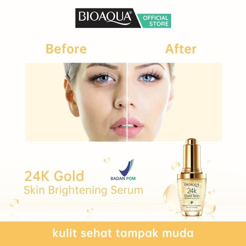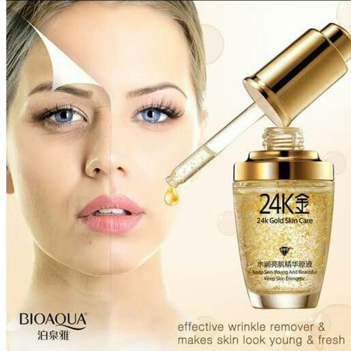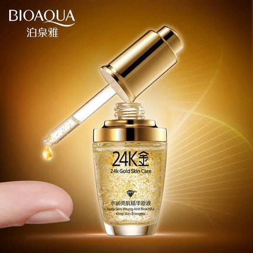BIOAQUA 24K GOLD ESSENCE FACE SERUM GOLD ANTI AGING SKIN CHANEL 24KBioaqua Facial Serum with 24K gold content is a product that is very suitable for your facial skin rejuvenation treatment. Able to help remove eye bags, wrinkles, prevent premature aging, restore the elasticity of your facial skin. Well-maintained skinBy using this product, getting healthy and well-groomed skin is no longer a mere dream.This product can help you to get rid of wrinkles on the face, remove eye bags, restore the elasticity of your skin.You will get healthy, well-maintained and wrinkle-free skin with regular use.24 karat gold extract is widely used in beauty products because it is very natural, safe and has many functions for the skin.Gold is able to delay the effects of aging and help the skin rejuvenation process. Coupled with collagen to maintain the elasticity of your skin which continues to decline with ageHow to use:Before use, wash your face with water.Apply the serum liquid on the face and massage gently on your face until the serum is completely absorbed on the face.