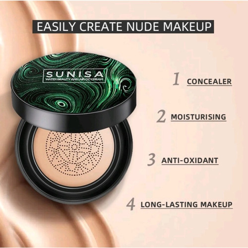 BPOM Approved ✅ 1# natural Color:NA112103000882# Ivory White:NA11210300089Fitur: 1. Bom jamur kecil, memperbaiki keindahan dan satu langkah di tempat; 2. Bom kepala spons, ketika bertemu air, menjadi lebih besar dan lebih lembut, portabel, ramah di kulit, tidak buntu dan seluruh proses tidak kotor; 3. bionik elastis kulit-ramah, bionik lembut ditekan secara merata halus BB cream; 4. Kecerdikan jamur kecil kepulan stick, jamur kecil make-up telur + kuas + puff, make-up adalah pembantu yang baik Formulasi: Kulit Cream Warna : tural/Ivory whiteNET WT: 20g Sunblock: Ya Manfaat: Melembabkan, Tahan lama, Menutupi pori-pori, Mencerahkanbahan: cream Jenis: BB & CC krimCara pemakaian :1. Mengambil BB cushion dengan Menekan PerlahanKetika mengambil BB cushion, jangan langsung ditekan dengan kencang ya. Kenapa? Karena jika kamu menekannya terlalu kencang, bb cream yang terserap oleh air puff kamu akan menjadi jauh lebih banyak dibanding yang kamu butuhkan. Dengan begitu, tentunya kamu akan boros dalam menggunakan BB cushion tersebut.Selain itu, dengan menekan cushion terlalu kencang, kemungkinan bb cream menjadi muncrat sehingga mengotori bagian luar air puff kamu juga bisa terjadi, lho. So, lebih baik jika kamu mengambil BB cushion dengan menekankan air puff pada cushion dengan perlahan, ladies.2. Mengaplikasikan BB cushion dengan Gerakan MenepukSelanjutnya, ketika mengaplikasikan BB cushion ke kulit wajah, sebaiknya kamu melakukan gerakan menepuk-nepukkan air puff pada seluruh permukaan wajah ya. Dengan cara ini, BB cushion kan mampu meng-cover seluruh permukaan wajah kamu secara merata, tanpa menggeser produk bb cream yang menempel pada bagian tertentu, lho.Selain itu, cara menepuk ini juga lebih mampu menutupi noda-noda pada wajah seperti bekas jerawat, noda hitam, ataupun kemerahan. So yeah, gerakan menepuk merupakan hal penting dalam mengaplikasikan BB cushion, ladies