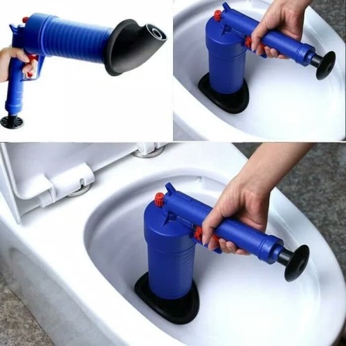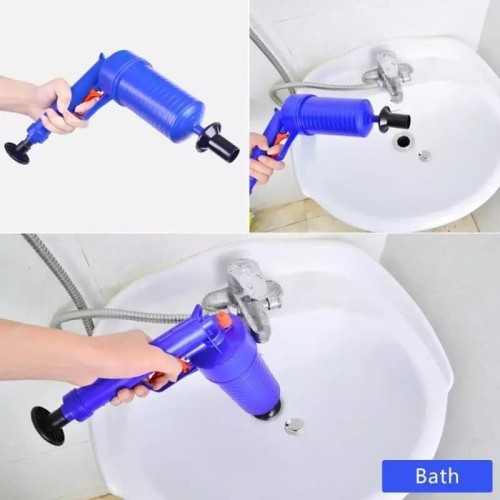 BOM Toilet Plunger, Air Drain Blaster, Pressure Pump Cleaner Pump Bath ToiletsPEMBERSIH SALURAN AIR POMPA HIGH PRESSURE TEMBAKAN WC TERSUMBAT SIMPLE PRAKTIS=======================================Description:Features:- ABS plastic, durable.- Gun body diameter of 8cm, increase air storage.- Trigger-type operation is more convenient.- Longer push rods increase the air intake, making it easier to use.- Increase screw thread, user-friendly design.About:Multi-function---Comes with 4 sized suckers, the Toilet Air Blaster can be used for toilet, washbasin, bathtubs, shower, sink, squatting pan, floor drain, blocked pipes and etc.Efficient Cleaning Capability---With high pressure air power, Toilet Plunger Set can deal with various blockages caused by all sorts of rubbish such as hair, cloth, tea, leaves, grease,oil dirties and so on.Easy To Use With Humanize Handle---The drain blaster uses the power of high-pressure compressed air to blast away the toughest clogs in your drains in just seconds.Just pump the drain blaster and squeeze the trigger, the clog is cleared instantly.Environmentally Friendly---ABS gun body, natural rubber blocked head. A natural rubber that is tough and durable for our drain blaster.Specifications:Material: ABS plastic rubberSize: 10.8inX 3.7in X 11in / 27.5cmX 9.5cmX28cmColor: BlueUse range: toilet, floor drain, sink, sewer, bathroom, etc.Package Included:1X Pawaca Toilet Plunger4X Suckers1X User ManualNotes:In order to protect the lubricating effect of the pump, it is recommended not to clean it. If for a long time, it is recommended to add a little powder to increase the lubrication.Terima kasih
