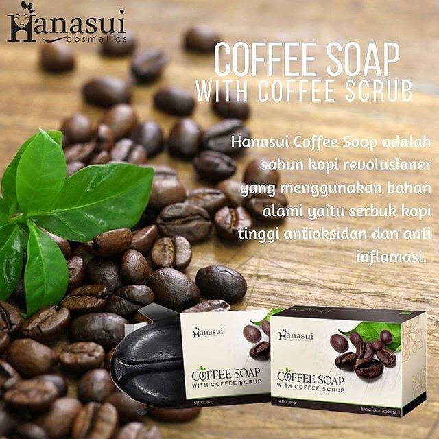 Dibuat dengan coffee Extract Hanasui Coffee Soap punya fungsi2 tersebut