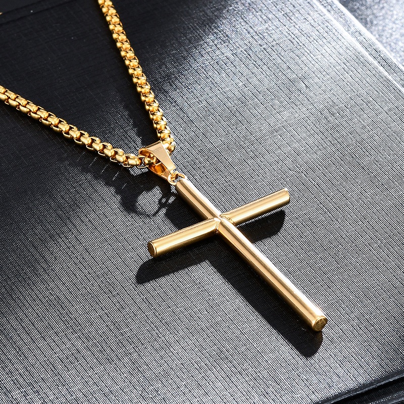 『Cashback』Kalung Salib Titanium Pria Dan Wanita Model Rantai Anti Karat Dan Luntur Warna Perak Silver Emas Anti Air Gold Fashion Import - Bayar Ditempat - COD