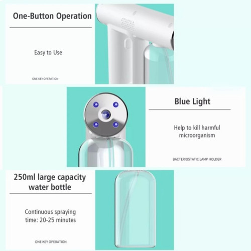 Barang Ready silakan di pesen 1 Koli isi 48pcsMODEL PORTABLE!! TANPA KABEL. Bisa di cas ( tidak perlu baterai )Mesin ini bisa menggunakan cairan apapun seperti : detol , penol , disinfektan , alkohol dan cairan sejenis pembasmi virus dan hamaKelengkapan :- Nano Steam Gun Portable- Charging USB Cable - Botol- Box- Buku Manual Spesifikasi :- Lampu biru = UVC untuk membunuh bakteri, aman untuk ke kulit- Dapat digunakan sebagai Humidification, Disinfection, dan Pest Control.- Disinfektan ruangan dan benda seperti : Kantor, Toko, Gudang, Restoran, Salon, Mobil, dll... - Design portable tanpa kabel (Wireless) dan jangkauan semprot 2-2.5 meter sehingga dapat menjangkau ke seluruh ruangan.Spesifikasi: Tegangan terukur: 110-240V Nilai daya: 13W Kapasitas baterai: 1500 mahTegangan daya: DC3.7V Waktu penggunaan: 1,5 jam Waktu pengisian daya: 4,5 jam Waktu penggunaan berkelanjutan: 25 menit Kapasitas botol air: 250mlVolume kemasan produk: 18,3*16.0*6.0cm Metode pengisian daya: kabel data USB Cara Pemakaian1.Input cairan (Alkohol / Non-Alkohol) ke dalam tabung.2.Tekan tombol dan produk akan aktif. Mohon menunggu 30-40 detik agar cairan dapat masuk ke selang. Kemudian, semprotkan ke ruangan atau objek sesuai yang diinginkan.Perawatan : Perhatian jika cairan disinfektan atau lainnya ditampungan sudah habis harap di flushing dengan air biasa.WARNING WAJIB DIBACAtidak ada garansi produk ( akan kita cek sebelum dikirim)*FREE Packing Bubble WrapUntuk Pengiriman Luar Kota, disarankan untuk tambah packing: