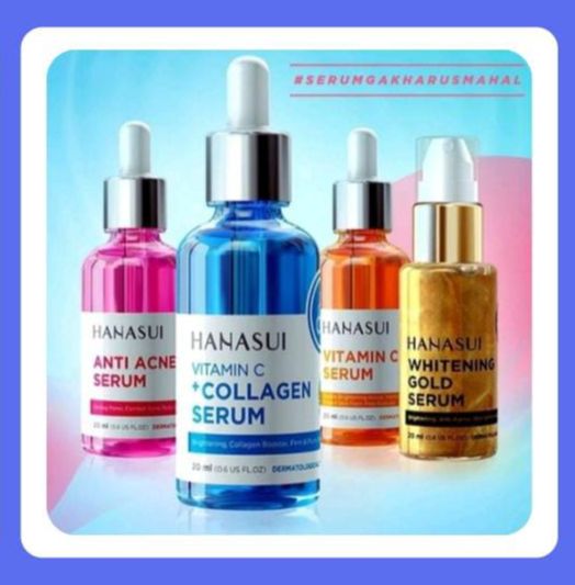Harga Hanasui Serum Paket Lengkap(Vitamin C orange + Vitamin C Collagen Biru + Anti Acne / Pink + Whitening Serum Gold)variasi :