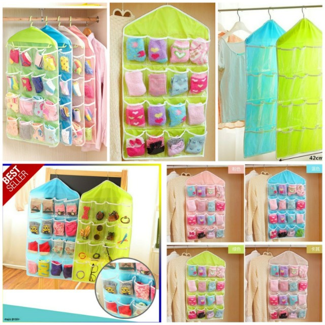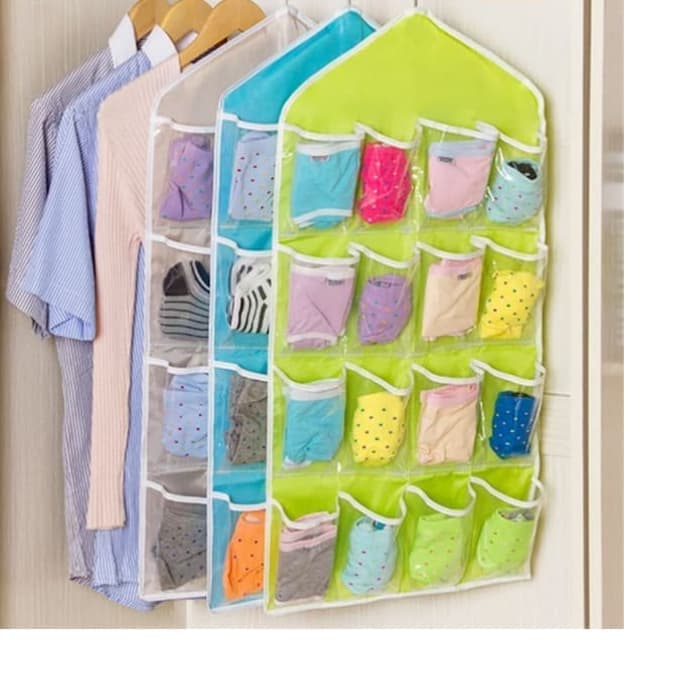 ✓ Pouch Gantung 16 Sekat Pouch Hanging Organizer 16 Sekat Korean Set Tempat Celana Dalam Gantung adalah solusi buat anda yang ingin menyimpan barang atau celana dalam jadi tersimpan rapi dan mudah diambil saat hendak dipakai.✓ Pouch terdiri dari 16 sekat transparan, tiap sekat dapat di isi 3-4 pcs celana dalam.✓ Pouch dapat digantung ke hanger, mumudahkan untuk digantung di dalam lemari.✓ Bagian atas terdapat lobang untuk hanger.✓ Selain untuk tempat panties, pouch juga dapat digunakan untuk tempat menyimoan aksesoris.