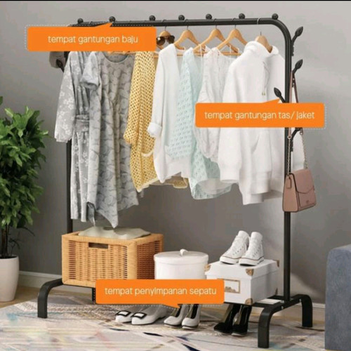 『Cashback』Rak jemuran baju pakaian gantung besi standing single clothes - Bayar DiTempat - COD