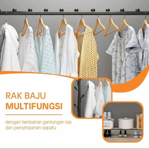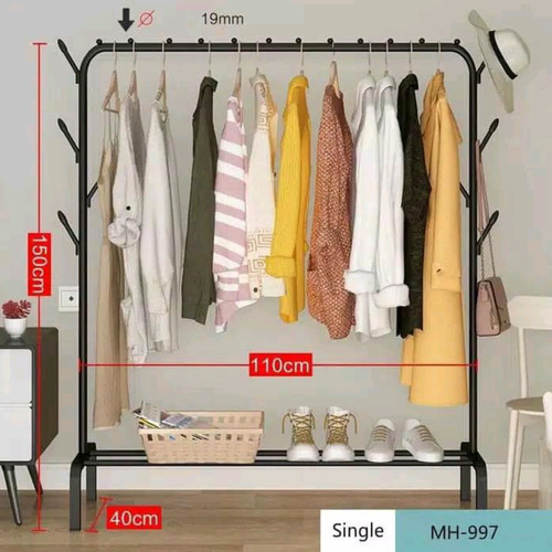 * Deskripsi Rak Jemuran Baju Pakaian Gantung Besi Rak Standing Single Clothes 997Ready Putih ( Hitam Gantungkan pakaian Anda pada Gantungan Pakaian Single Megahome. Selain memiliki desain yang elegan, gantungan pakaian ini dilengkapi dengan tempat sepatu pada bagian bawahnya ,gantungan topi disisi samping , sehingga Anda dapat menggantung pakaian ,topi sekaligus meletakkan sepatu kesayangan pada satu tempat. Terbuat dari material besi berkualitas, membuatnya kokoh dan mampu menahan beban yang berat dari sepatu maupun pakaian.SPESIFICATIONSModel : Floor Hanger Stand Multi-purposeBold Steel PipeProfessional Design and High Quality MaterialMaterial : Metal Stainless steelSize : 110 x 40 x 150cmBuilt-in Hanger HookBuilt-in Anti Slip Base FootNumber of Hook : 6Pipe Diameter : 19mmPipe Thickness : 1.11mmWeight Capacity: overall : 88.2 lbs. (40 Kg)Product Weight : 2.75kg Suitable for : Jacket, Clothes, Towel, Hat, Shoes, and OtherEasy to InstallPACKAGE INCLUDED1 x Multifunction Standing Metal Garment Storage Rack Hanger 110 x 40 x 150CM With 6 Hook1 x Installation Manual(Standing rack only, the others not included) Ready stock siap kirim yaa, bisa langsung diorder. Menyediakan berbagai jemuran.