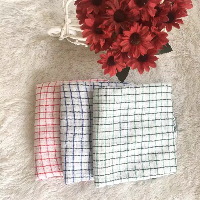 Serbet / Kain Lap Tangan / Lap PiringSize besar 50 x 50 cmBisa digunakan sebagai kain pembungkus rantangMudah dicuciSerat lebih rapat dan rapiWarna yang dikirim acak : merah, hitam, biru, hijauBahan: Poly/Cotton