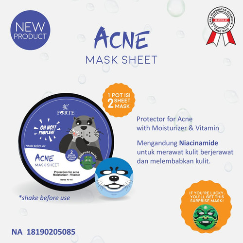 BARU FROM SYB acne mask JANGAN LUPA SHAKE (KOCOK ) SEBELUM DI PAKAI Buat kamu yg punya masalah jerawat bandel jangan lupa pakai ini ya. Desain yang begitu lucu dengan gambar unik dan kandungan anti acne bs kamu pakai 1 mgg 2x. Yukkk tunggu apa lagi. BURUAN DI COBA SERU ADA SUPRICE MASK YANG BERGAMBAR NAGA LHO... Kemasan model cup /pot ini berisi 2 tisu bila punya tisu wajah kering kondisi baru. bs di masukan di sisa cairan yg ada di cup. Jadi bisa di jadikan masker sheet lagi ya. Dan keuntungan ke 2 Bahkan tanpa menggunakan sheet tisu wajah baru bs di gunakan dengan mengoleskan cairan sisa masker sebagai serum untuk d gunakan bersama cream perawatan wajah mu. Keuntungannnya tdk perlu mencari kemasan untuk menyinpan sisa cairan masker. Sisa cairan bs di simpan di kulkas. Dan mudah di bawa kemana2 Cara pakai. Basuh wajah hingga bersih, gunakan masker syb animal mask sesuai kebutuhan. Diamkan 20 menit kemudian lepas. Dan tdk perlu di basuh. Fungsi:Mengeringkan jerawat Mengurangi rangsangan tumbuh jerawat Mengatasi bakteri jerawat membandel Mengonrol kadar air di kulit Sudah aman ber BPOM. HARGA TERJANGKAU.
