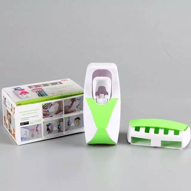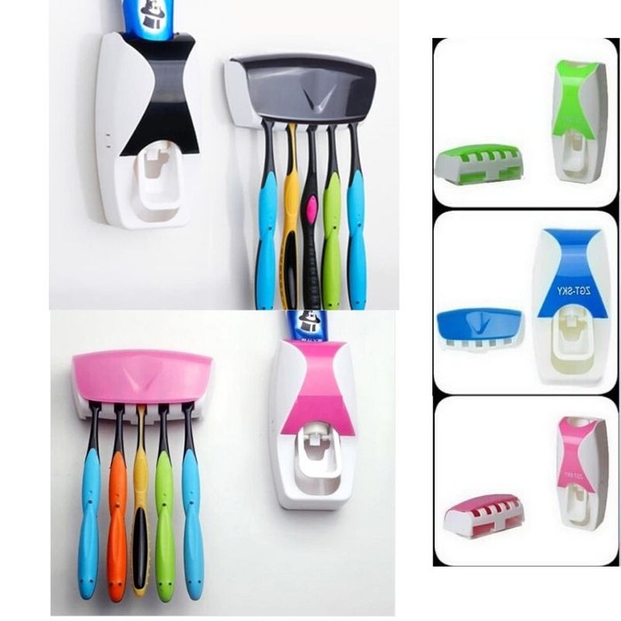 Dispenser odol plus tempat sikatgigiTerdapat penyimpanan 5 sikat gigi yang higienis dan rapiPasta gigi keluar dengan mudahTidak menggunakan listrik ataupun bateraiDesain cantik dan menarik untuk kamar mandi AndaUkuran Kotak: 20 cm x 7 cm x 13 cmUkuran Produk: 6 cm x 4 cm x 11 cmMaterial : Plastik PP