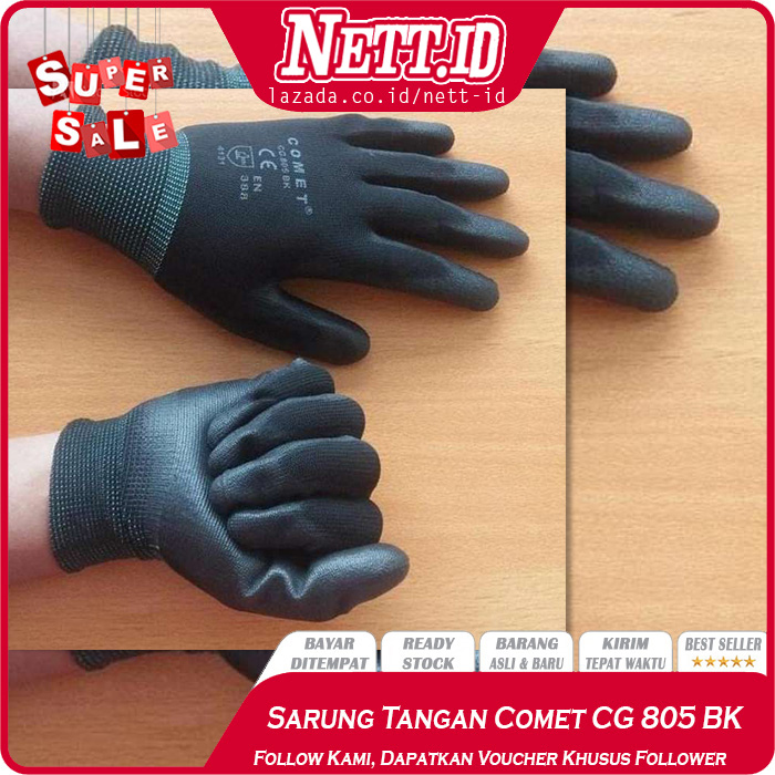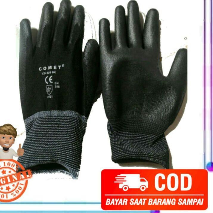 【COD SUPER SALE】 Sarung Tangan Palm Fit Comet CG805BK Hitam Sepasang Baru Bahan Karet Material Nylon Polyrethane Merk Comet CG 805 BK Palm Fit Warna Black 1 Pasang Pair / 2 Buah Kanan-Kiri Size S M L XL Termurah Grosir - Bayar Ditempat - C