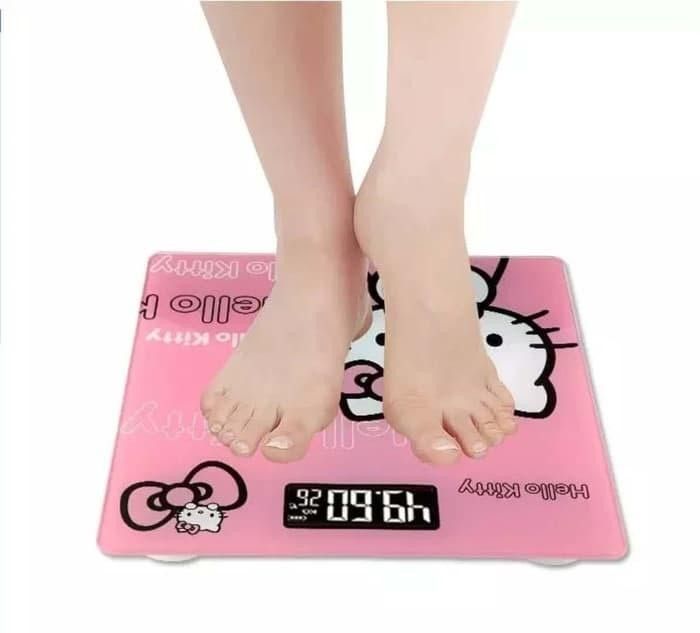 Timbangan Badan Digital Karakter Desain Design Kartun Gambar Pink / Hello Kitty Warna Pink