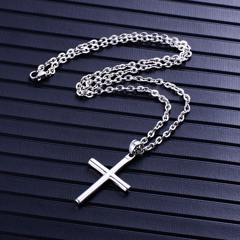 【Liontin+Rantai】Kalung Liontin Salib Titanium Unisex / Pria / Wanita Anti Karat Viral Tiktok Korean Necklace Stainless Steel Warna Perak Silver Emas Anti Air Gold Fashion Import - Gratis Ongkir Harga Grosir Termurah Bayar Ditempat COD - To