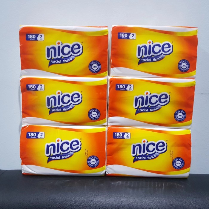 ✓ PAKET HEMAT 6 pack Nice 180 sheets / 180 lembar✓ Tiap lembar terdapat 2 ply / 2 lapis / 2 layer✓ Ukuran tisu P x L x T = 17,5 cm x 10 Cm x 6,5 cm​​​​​​​✓ Terbuat dari 100% serat alami, higienis, lembut, berdaya serap tinggi, dengan kualitas premium