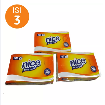 【PAKET HEMAT 3PCS】Tissue Facial Nice 180 Sheets 2 Ply Tisu Tisue Tissu Wajah Muka 180s 180 Lembar 2 Rangkap 2ply 2 Lapis Pembersih Refill Original Untuk Di Rumah Makan Mobil Restoran Dapur Steril - Bayar Ditempat - COD