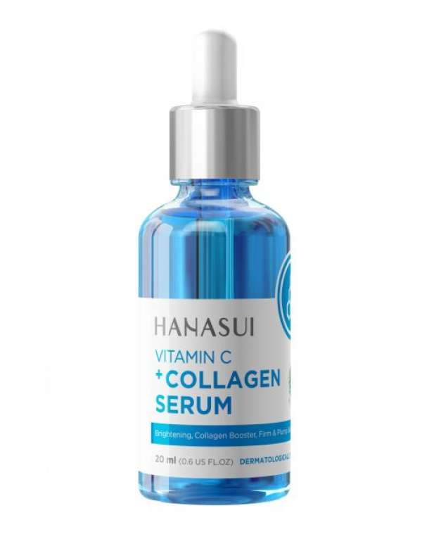 - Hanasui Vitamin C + Collagen Serum [20 mL/ Botol Biru] merupakan serum yang dapat mengurangi kerutan pada kulit wajah dan mengurangi kantung mata. Anti oksidant pada kulit/ anti aging efek. Mencegah radikal bebas yang berasal dari debu, asap, dan sinar matahari sehingga penuaan pada kulit dapat diperlambat.