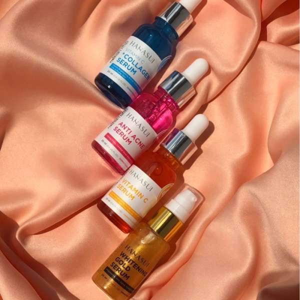 PAKET 4 HANASUI SERUM (Whitening Serum Gold + Anti Acne Pink + Vitamin C Collagen Biru + Vitamin C orange)