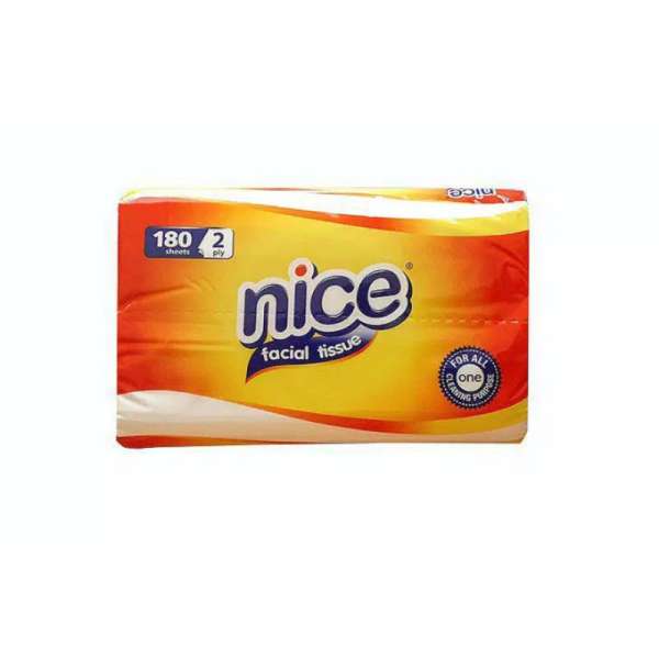 Tissue Nice facial 180 sheet 2 ply merupakan tisu wajah berbahan 100% serat alami yang higienis, lembut, dan alami serta kemasan yang premium . Tisu wajah ini memiliki kekuatan, daya serap tinggi.