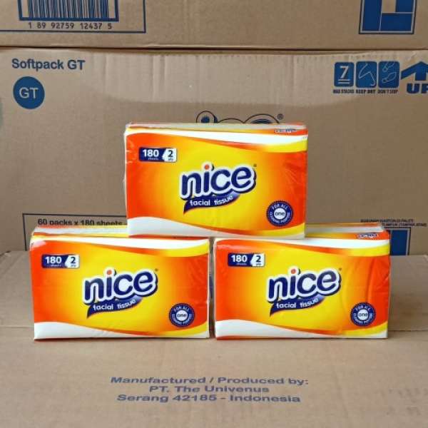 Kelembutan, kualitas premium dan harga yg sangat terjangkau membuat kepercayaan Tissue Nice facial 180 sheet 2 ply sudah tidak diragukan lagi. Cocok digunakan untuk semua aktivitasmu serta cocok untuk keperluan seluruh keluarga.