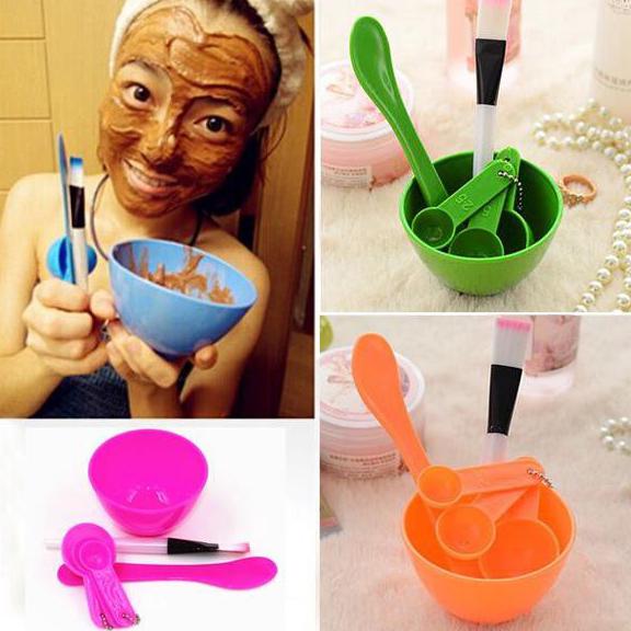 *Paket Hemat* Mangkok Masker Set 4in1 Lengkap Makeup Brush Sendok Pengaduk Alat Make Up Kosmetik Kulit Wajah Gagang Panjang Plastik Warna Biru Merah Kuning Hijau Bisa Dicuci Cantik Kuas Import Termurah 4 in 1 - Bayar Ditempat - COD