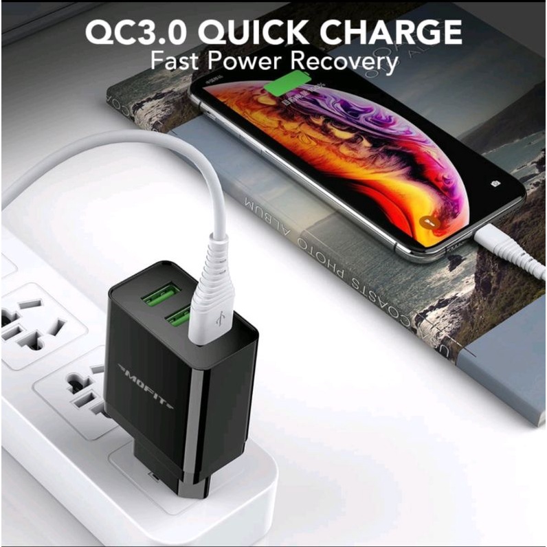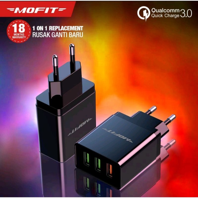 [ Bayar ditempat ] MOFIT MF30 - 3 Port USB Output Quick charge 3.0 Fast charge 2.4 - HITAM