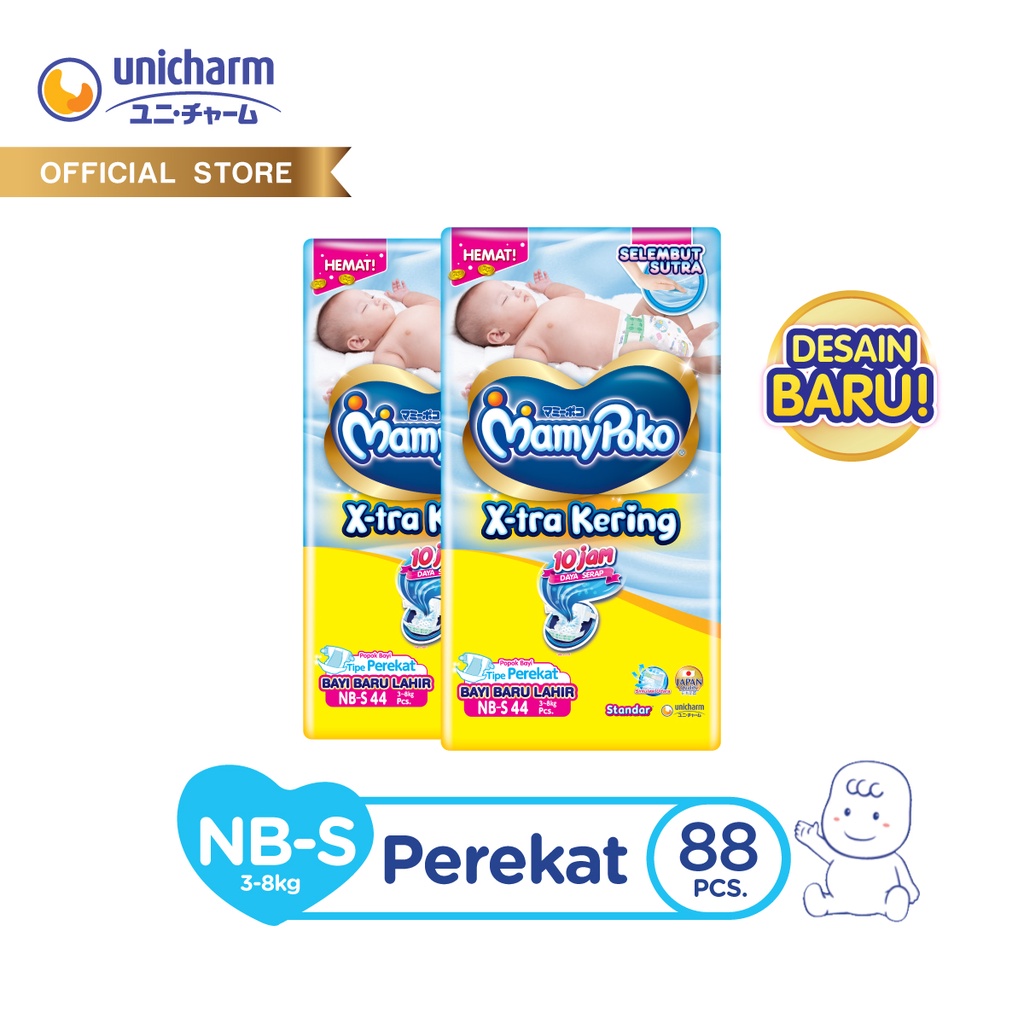 [ Promo ] Gratis Ongkir - MamyPoko X-tra Kering - NB-S 44 - Popok Perekat - 2 Packs