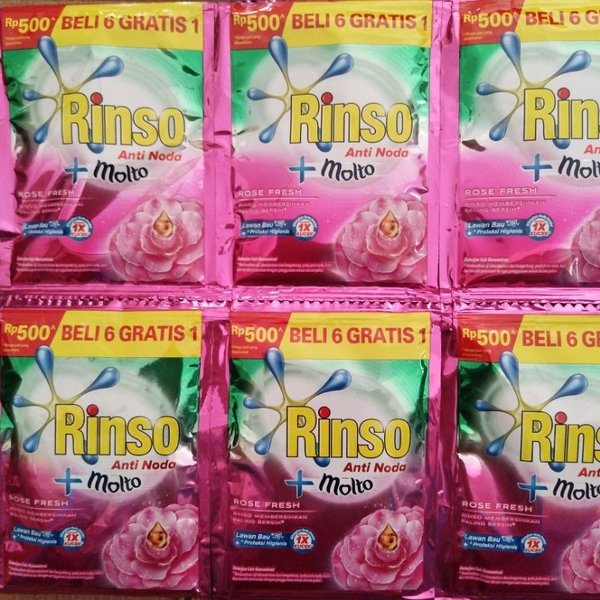 Rinso Molto Deterjen Cair Rose Fresh BARU! Kini hadir dengan teknologi Double Clean Fresh, melindungi pakaian dari bakteri dan menghilangkan bau tak sedap. Dengan formulasi anti noda, cepat menghilangkan noda membandel hanya dengan 1X kucek! Memberikan keharuman mempesona Rose dan Berry yang tahan hingga 21 hari. - Dengan formulasi anti noda, menghilangkan noda dalam satu kali kucek. - Dengan teknologi SmartFoam, busa lebih cepat hilang, menghemat hingga setengah air bilasan. - Memberikan keharuman mempesona Rose dan Apel Merah yang tahan lama pada pakaian. - Menjaga warna pakaian tetap cemerlang. - Lembut dan tidak panas di tangan - Bersertifikasi halal.