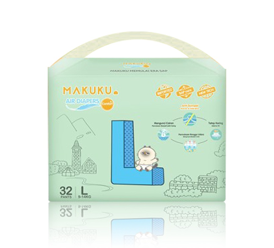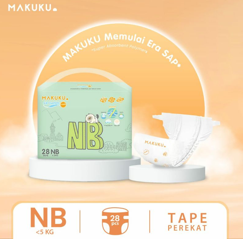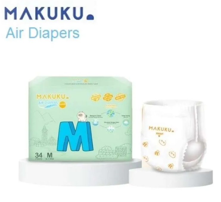Makuku air diapers merupakan diapers baru untuk bayi diindonesia yg di design dengan bahan anti gumpal dan 100% SAP inti struktur,