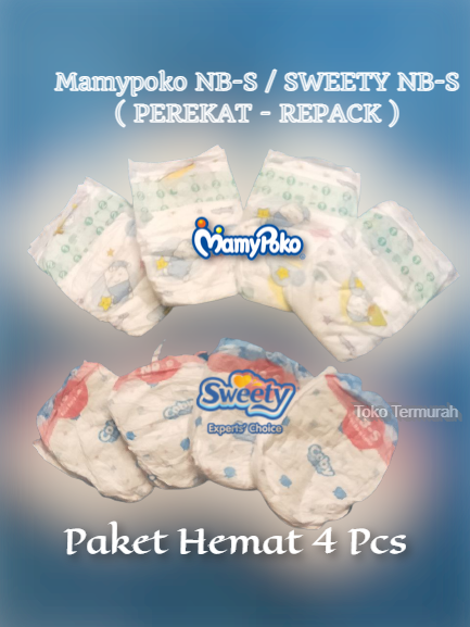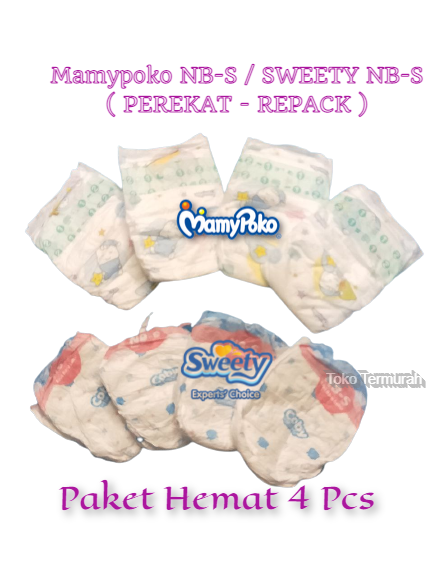 [ PROMO ] Termurah Popok Repack size NB-S perekat isi 4pcs Harga hemat