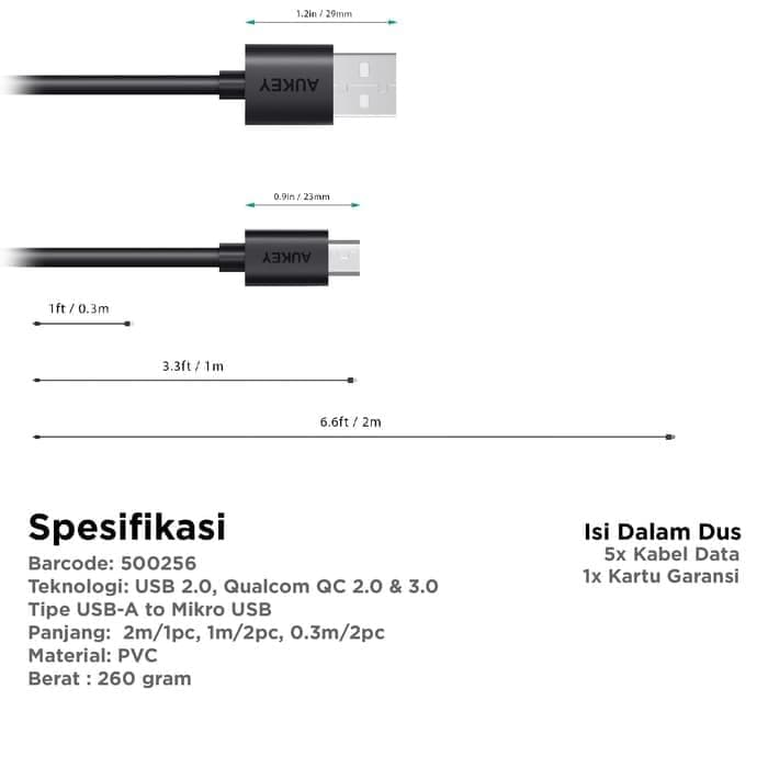 [Bayar ditempat] Original Kabel Charger Aukey CB-D5 High Speed Micro USB 1 Pcs or 1 Set