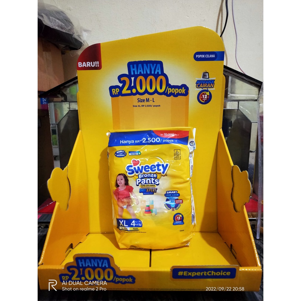 Sweety Bronze Pants Dry Xpert Mini Pack Baru !! Produk ini cocok untuk moms yang suka bepergian. - Dengan teknologi Smart Leak Lock, yang dapat menyerap cepat & mengunci cairan dengan sempurna, kering hingga 12 jam - Didukung dengan SAP Bacteria Control yang dapat mencegah tumbuhnya bakteri, sehingga kulit si Kecil tetap kering dan sehat - Dibuat dengan bahan popok bersirkulasi udara, selembut kapas, sehingga cegah lembab, cegah iritasi membuat si Kecil nyaman, bebas bergerak dalam kondisi apapun - Mempunyai perlindungan 360 derajat yang elastis dan lembut, tidak menimbulkan bekas kemerahan pada kulit bayi