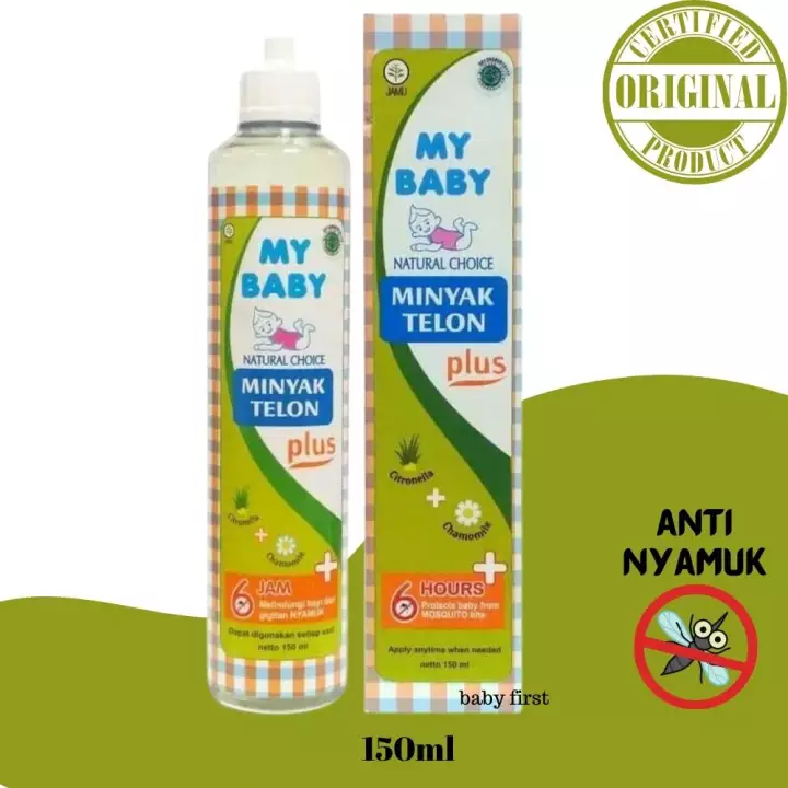 MY BABY Minyak Telon Plus adalah minyak telon yang akan menjaga kehangatan tubuh si kecil. Dibuat dari bahan alami (Eucalyptus, Citronella, dan Chamomile) yang nyaman untuk tubuh bayi. • Aroma menenangkan • Kemasan praktis • Bahan-bahan alami • Halal Manfaat • Menjaga kehangatan tubuh si kecil • Meredakan kembung dan masuk angin • Melindungi dari gigitan nyamuk hingga 8 jam Kelebihan • Aroma menenangkan • Kemasan praktis • Bahan-bahan alami • Menyegarkan • Mudah dibawa dan disimpan Isi : 150mL