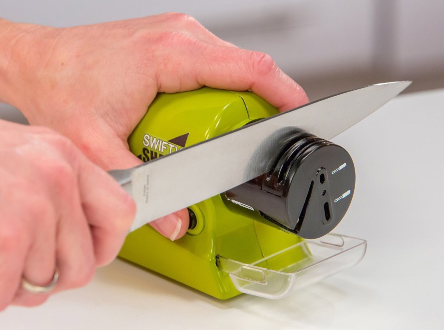 Pisau atau gunting akan menjadi tumpul jika telah lama digunakan, namun untuk membuangnya begitu saja rasanya sayang juga. Nah, dengan Swifty Sharpr, Anda bisa mengasah pisau dan gunting seketika sehingga pisau dan gunting Anda menjadi tajam dan dapat digunakan kembali.