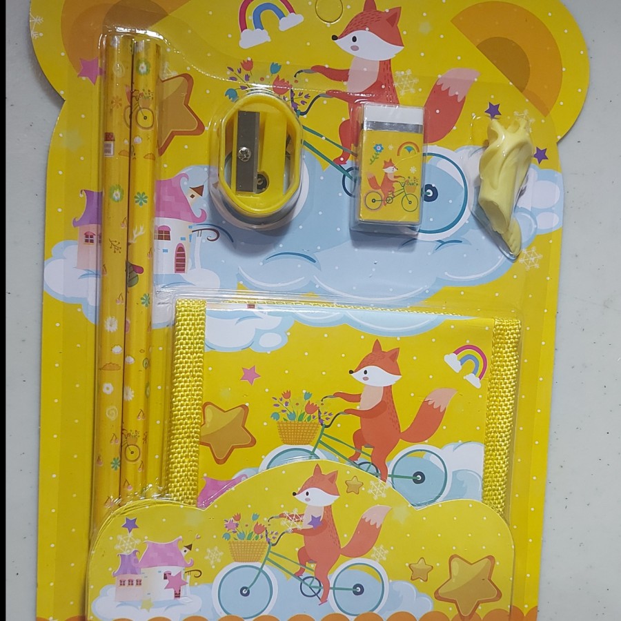 Paket Alat Tulis Anak dengan motif Karakter kartun kesukaan anak anda.membuat anak-anak lebih tertarik dan bersemangat dalam belajar.tersedia banyak motif karakter kartun yang terkenal.cocok untuk anak sekolah unik dengan beberapa gambar motif buat anak semangat.1 set isi- 2 pcs pensil- 1 pcs dompet- 1 pcs serutan- 1 pcs penghapus- 1 pcs penutup pensilberat satuan 90 gram