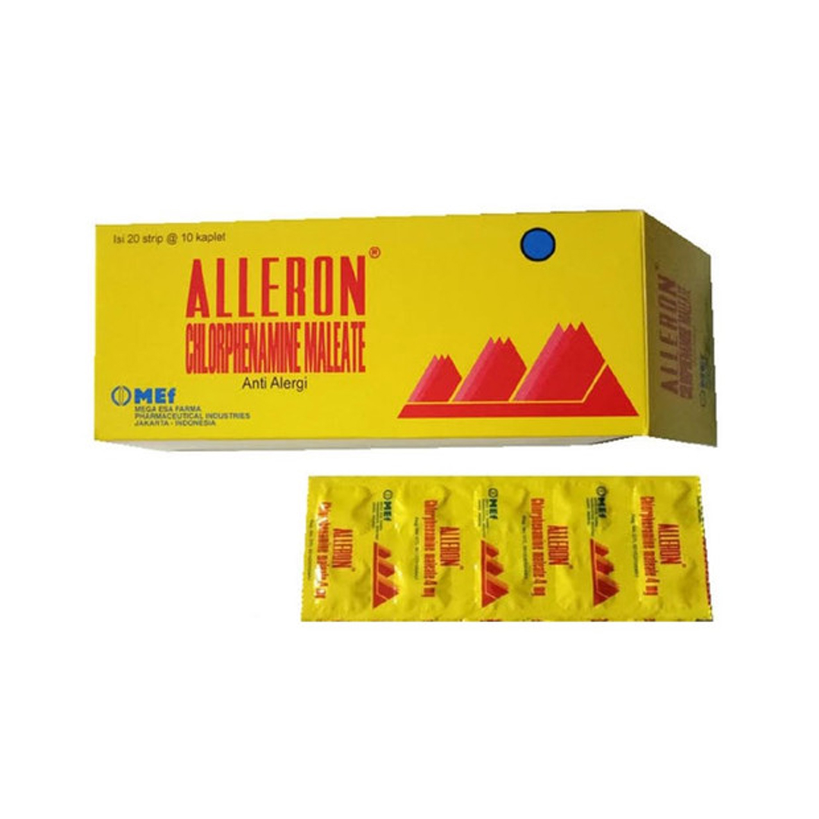 ALLERON 4 MG 10 KAPLET merupakan obat antihistamin yang di gunakan untuk mengobati alergi rhinitis, konjungtivitas, uritcaria, gatal-gatal karena gigitan serangga, alergi eksema dan dermatitis