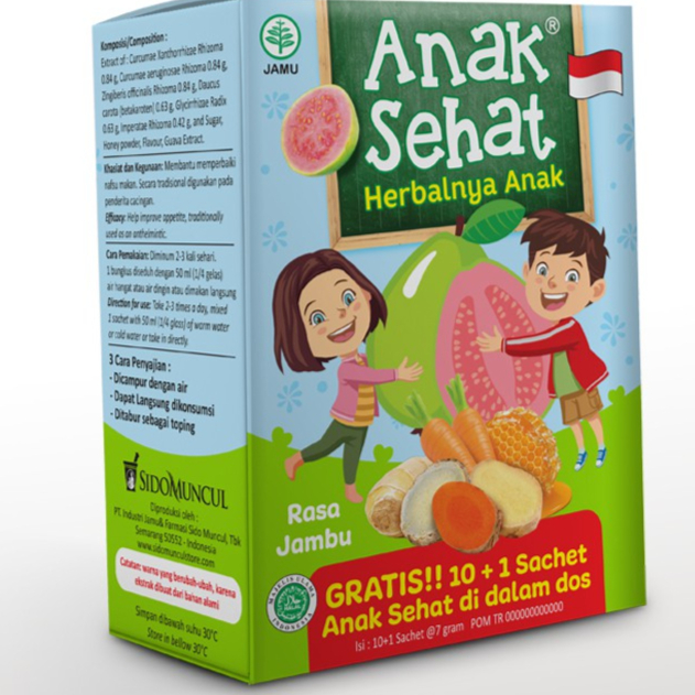 Anak Sehat Jambu sangat baik diminum anak-anak untuk meningkatkan nafsu makannya karena mengandung temulawak, dengan rasa Jambu yang sangat disukai anak-anak.
