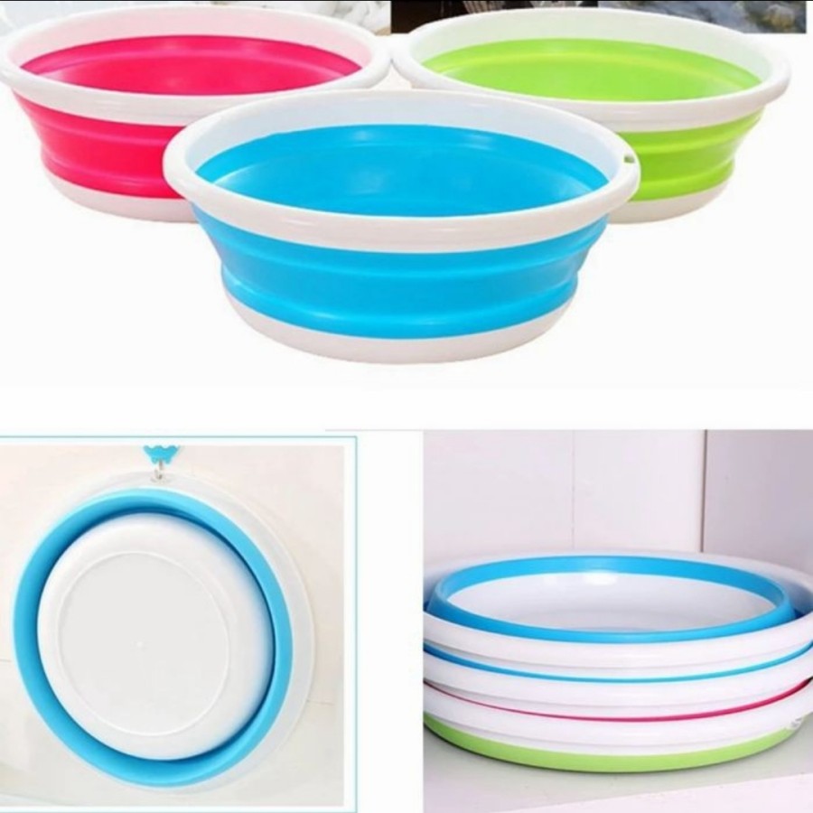 Baskom lipat serbaguna, praktis, portable, mudah dibawa kemana mana, hemat tempat. Bahan produk: Standar FDA, food grade PP + karet Fitur produk: aman, perlindungan lingkungan, tidak beracun, tidak lengket, tahan lama, mudah dibersihkan- baskom terbuat dari bahan berkualitas dan tebal.- bisa dilipat menjadi kecil, cocok utk dibawa traveling, kemping dan ll- multi fungsi, bisa utk menampung air, cuci buah, cuci pakaian dll.warna randomharga per 1pc